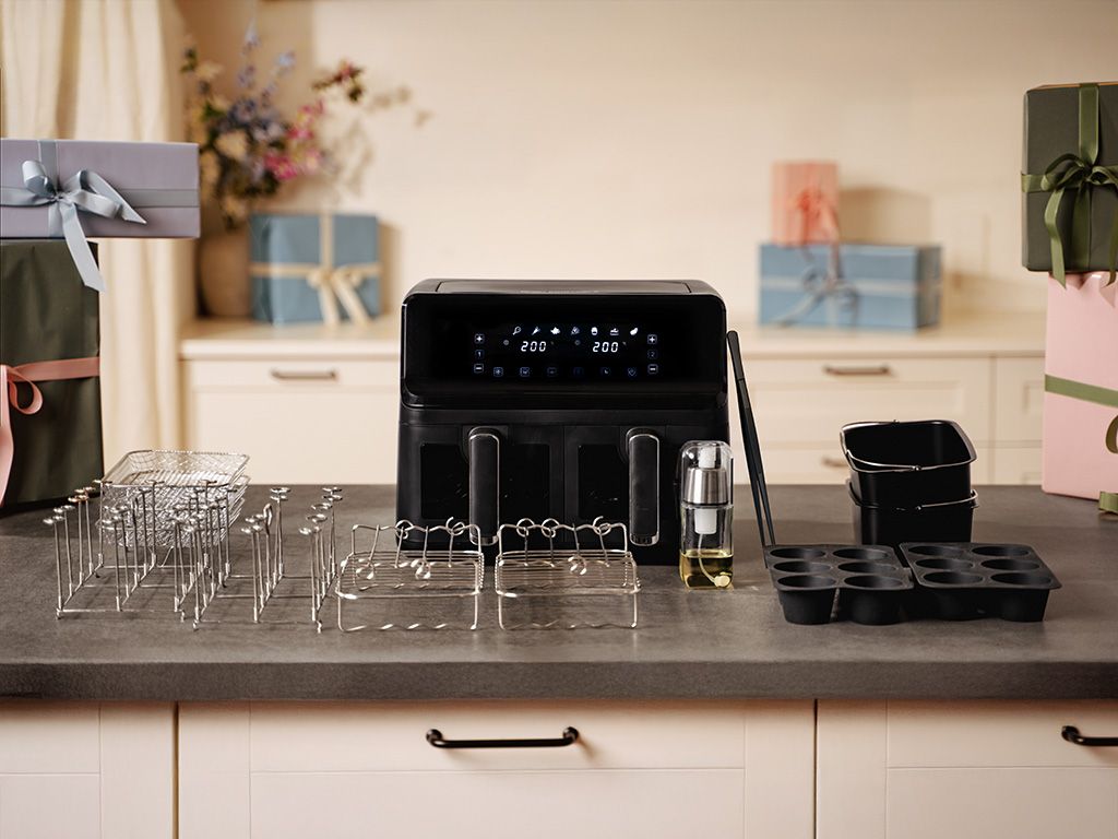 Dual Air Fryer Special er en fantastisk tilføjelse til dit køkken. Denne frituregryde fra ONYX COOKWARE giver dig mulighed for, at tilberede sundere måltider med mindre olie.